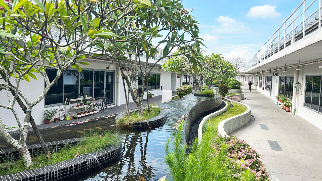 A thoughtfully designed outdoor area with greenery, offering participants a place to step away, recharge, and find new inspiration during breaks or reflection moments.